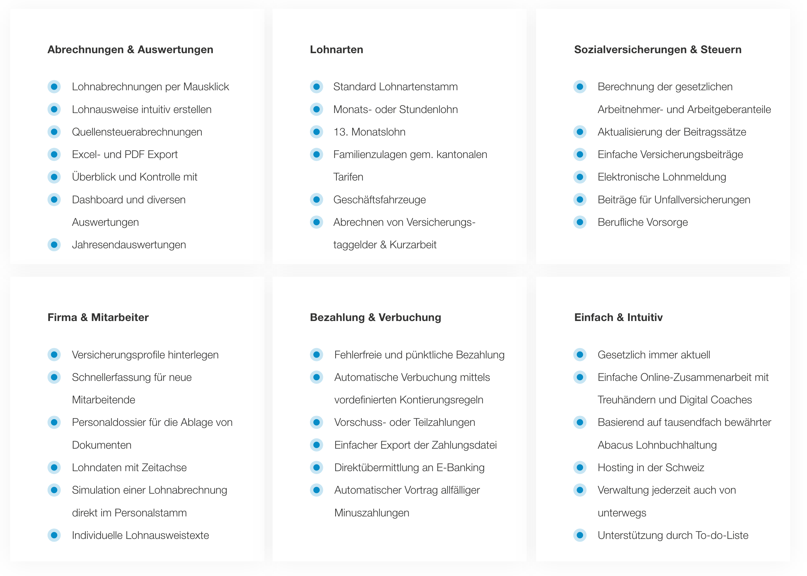 Mit Abacus erhalten Sie alles aus einer Hand – und das ganz ohne Schnittstellen. Für jedes Bedürfnis gibt es die passende Lösung aus der modular erweiterbaren Software-Palette von Abacus.